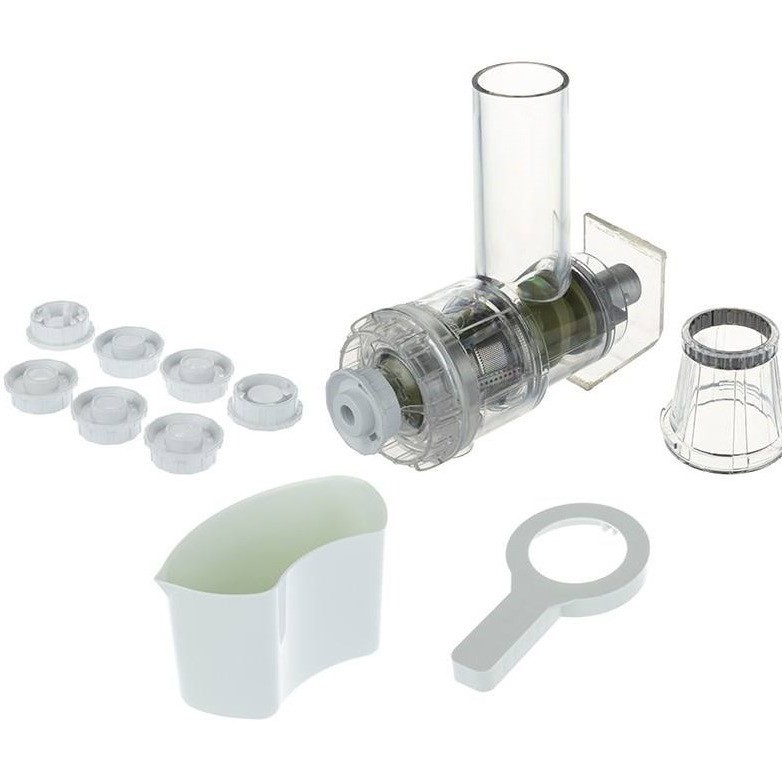 | سایر مشخصات | - موارد استفاده: آب گیری میوه های مختلف از قبیل لیمو ترش، انار، هویج، سیب، گلابی، کیوی، انگور، غوره و میوه های مشابه، خرد کردن انواع دانه های روغنی مانند گردو، قابلیت تهیه انواع پوره از سیب زمینی، شلغم، سویا، بادمجان و انواع حبوبات پخته شده به صورت مجزا، قابلیت خرد کردن پیاز و سیب زمینی خام به صورت مجزا یا مخلوط، قابلیت خرد و مخلوط نمودن انواع غلات و حبوبات پخته، امکان ایجاد نمودن فرم های مختلف ماکارونی و رشته - قابلیت نصب بر روی بدنه چرخ گوشت های شرکت پارس خزر مدلهای: 1600، 1500، 1400، 1200 - فیلتر جدا کننده آب میوه، خردکن و مخلوط کن، دارای ظرف جمع آوری آب میوه، دارای گواهی استاندارد ایمنی محصول |