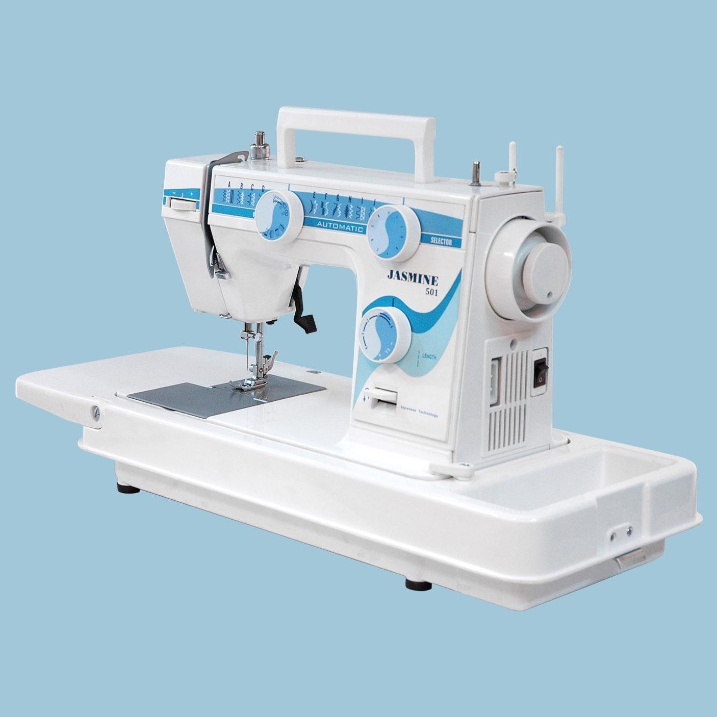 چرخ خیاطی یاسمین ۵۰۱ با بدنه ای از جنس آلومینیوم و مستحکم بصورت کف تخت می باشد. این چرخ دارای درب و نیز با قابلیت میز اضافه شونده می باشد که برای دوختهای با وسعت بیشتر کاربرد دارد. این سری چرخهای کاچیران با کاربرد خوب و کیفیت دوخت عالی جزو بهترین محصولات شرکت کاچیران می باشند .